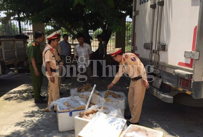 Trước đó, vào chiều ngày 23/5, tại km937+500 Quốc lộ 1A địa phận xã Hòa Phước, huyện Hòa Vang, TP. Đà Nẵng, tổ công tác của Trạm cảnh sát giao thông (CSGT) cửa ô Hòa Phước thuộc Phòng CSGT Công an TP. Đà Nẵng do đồng chí Trung tá Nguyễn Đức Thịnh, Phó Trạm trưởng làm tổ trưởng đã phát hiện xe ôt ô tải đông lạnh biển kiểm soát 85C - 035.01 lưu thông hướng Bắc Nam vận chuyển 5 thùng xốp chứa hơn 200 kg gân, giò bò đã bốc mùi hôi thối, meo mốc.
