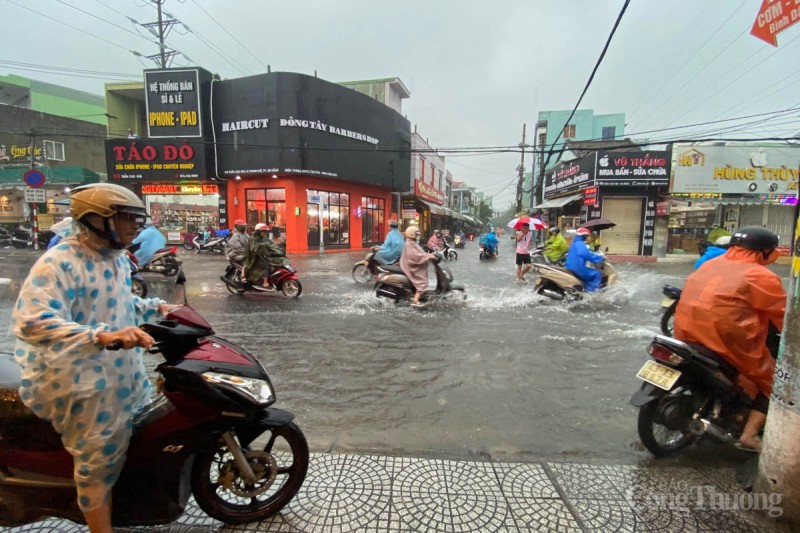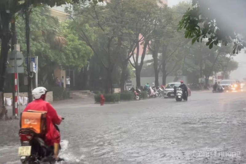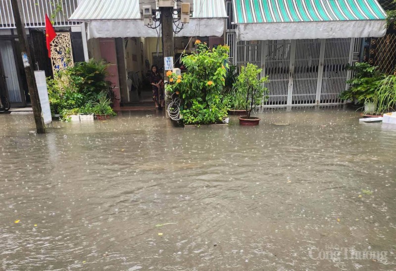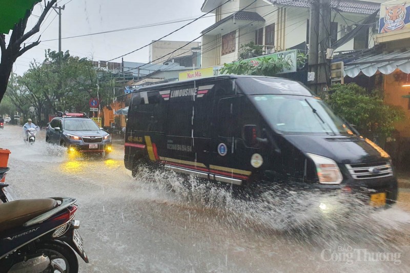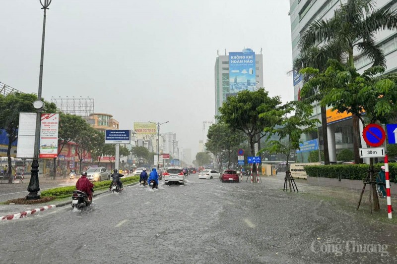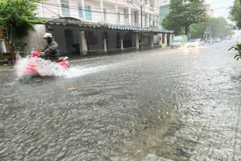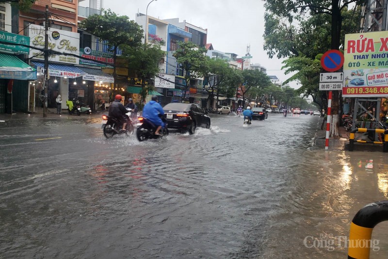 | Tại khu vực trung tâm TP. Đà Nẵng, mưa lớn liên tục kéo dài đã gây ngập sâu ở nhiều tuyến đường trung tâm thành phố (Ảnh chụp tại đường Trần Cao Vân lúc 15h00 chiều 13/10) |