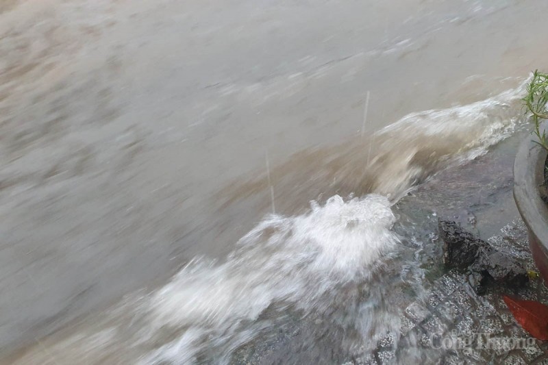 | Một lượng lớn nước mưa không kịp thoát vào cống thoát nước |
