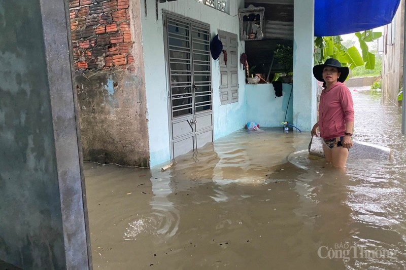 | Khu dân cư Khe Cạn (Hòa An, Cẩm Lệ) nước đã ngập vào nhà dân |