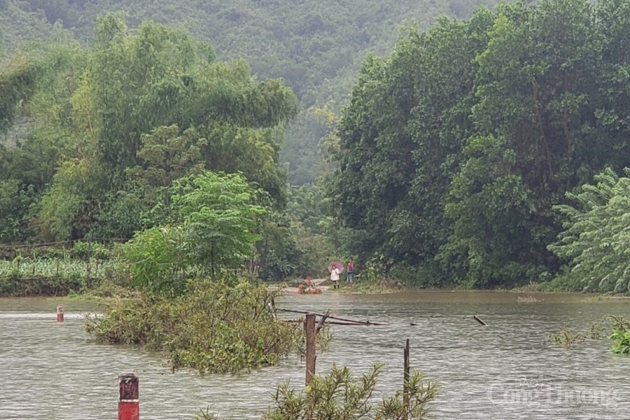 | Cá biệt, do nước mưa từ trên núi đổ xuống nhanh, mạnh đã cô lập hoàn toàn thôn Lộc Mỹ (xã Hòa Bắc, Hòa Vang, Đà Nẵng). Ở đường chính vào thôn vào lúc 11 giờ trưa ngày 8/10 ghi nhận nước đã ngập sâu, nơi sâu nhất ngang lưng eo người. |