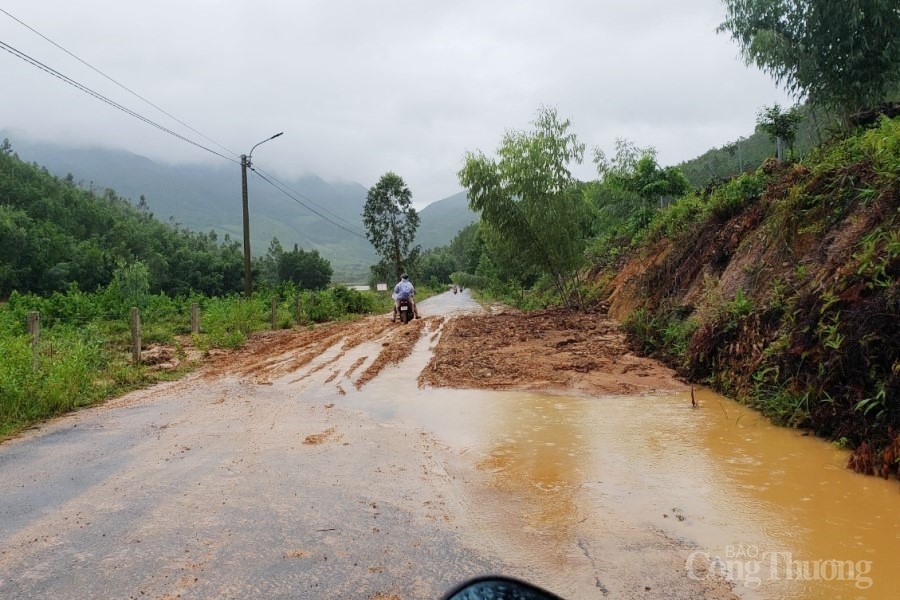 Ghi nhận tại địa bàn huyện Hòa Vang, mưa lớn đã khiến đất đá trên đồi núi sạt lở xuống một số vị trí tại đoạn đường liên huyện, liên xã đoạn nối từ đường Ngô Xuân Thu (Hòa Hiệp Bắc, Liên Chiểu, Đà Nẵng) đến các xã Hòa Liên, Hòa Bắc (Hòa Vang, Đà Nẵng). |