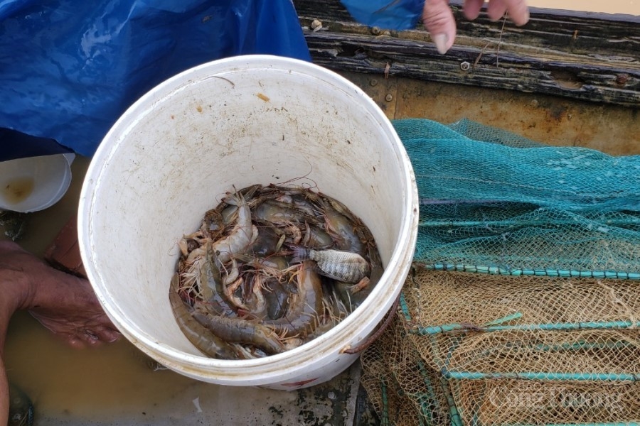 | Ông Nguyễn Đắc Phương (thôn Trường Định, Hòa Liên, Hòa Vang, Đà Nẵng) cho biết, gia đình ông nuôi 4 hồ tôm, bình thường mỗi hồ thì hơn 1 tấn, nhưng mùa mưa thì nuôi ít hơn. Năm nay mưa lớn đột biến nên không trở tay kịp, 5 tạ tôm chuẩn bị đến ngày thu hoạch coi như mất trắng. |