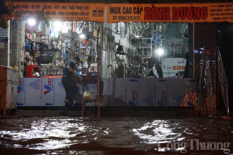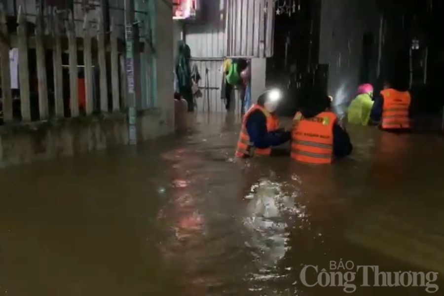 | Chính quyền các Phường, Quận nhanh chóng hỗ trợ người dân di chuyển tránh lũ dâng ngay trong đêm. Tại các con hẻm nhỏ, nơi hệ thống thoát nước kém, lũ tràn vào nhà dân đến ngang hông. |