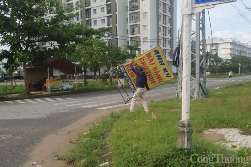 | Lực lượng quy tắc đô thị phường Hòa Minh (quận Liên Chiểu, thành phố Đà Nẵng) tịch thu tấm biển quảng cáo |