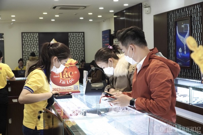Vừa mua vàng may mắn, chị Trần Thị Thu Hà (SN 1989, phường Hòa Khánh Nam, quận Liên Chiểu, TP. Đà Nẵng) cho biết như mọi năm, năm ni chị vẫn mua 2 chỉ vàng trơn (vàng nhẫn) để lấy lộc may mắn đầu năm. “Tôi tranh thủ mua rồi còn đi làm. Mua 2 chỉ để lấy may, cầu mọi việc hanh thông, phát tài phát lộc trong năm mới”, chị Hà chia sẻ. |