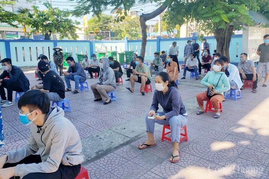 | Ngay từ sáng sớm, người dân tại khu dân cư Quang Thành 2A và 2B (thuộc phường Hòa Khánh Bắc) đã có mặt tại trường tiểu học Ngô Sĩ Liên để lấy mẫu xét nghiệm Covid - 19 |