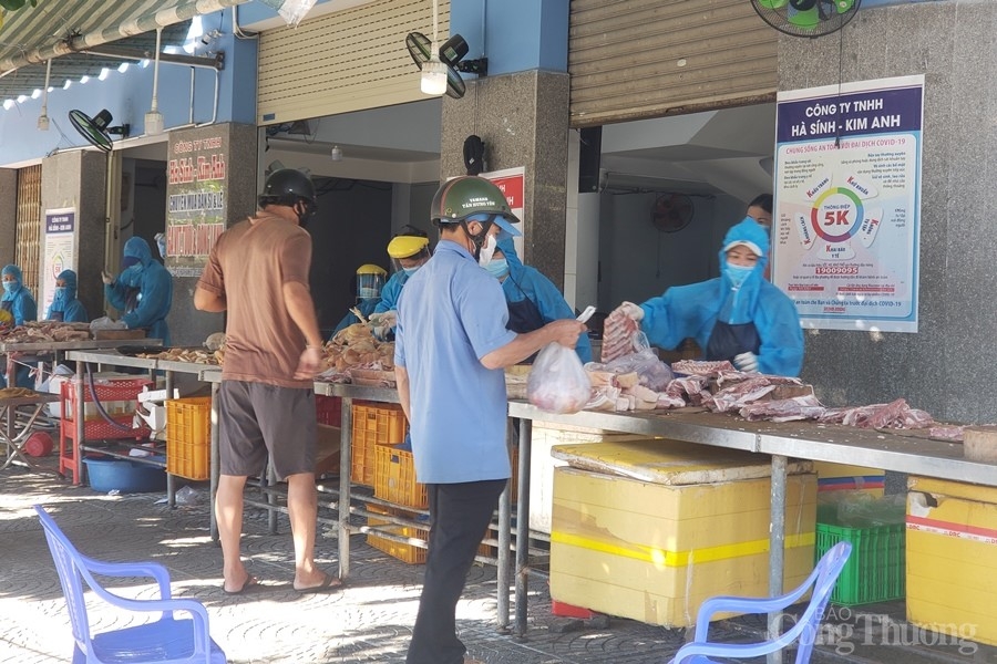 | Các chợ, cửa hàng kinh doanh lương thực, thực phẩm mở cửa từ sớm để phục vụ người dân (người dân phường Hòa Khánh Bắc mua thực phẩm sáng ngày 17/7) |