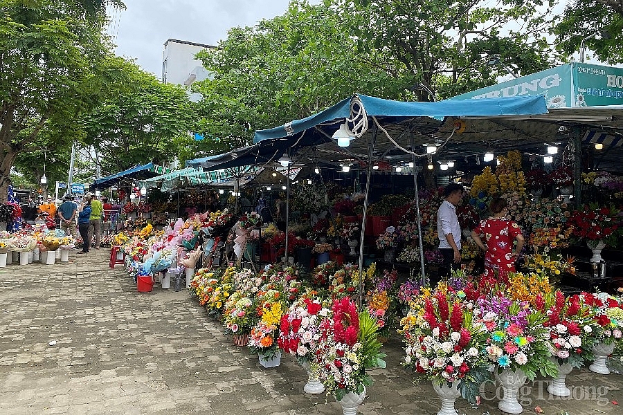 Tại những cửa hàng hoa bên ngoài chợ Hòa Cường (Q. Hải Châu), các tiểu thương đều tỏ ra vui mừng khi sức mua năm nay ổn định dù dịch bệnh vẫn còn gây ảnh hưởng lớn tới kinh tế địa phương. Nhiều cơ sở đã mở bán hoa từ 2-3 ngày trước.