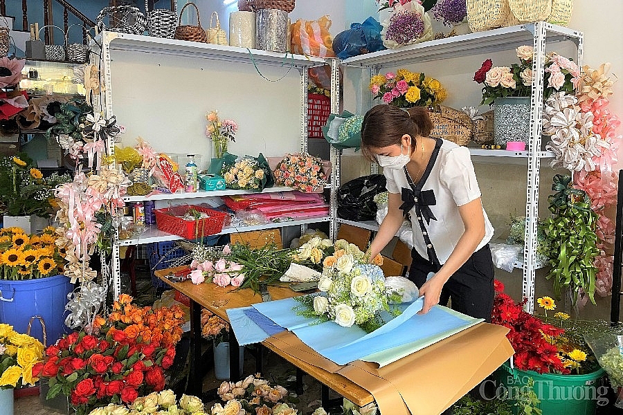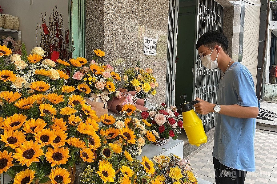 Chị Nguyễn Thị Hằng (chủ tiệm hoa tươi trên đường Lê Thanh Nghị) cho biết, ngoài bán tại chỗ, chị còn bán qua hình thức online, số lượng đơn rất khả quan.