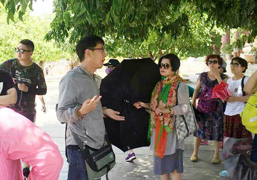 | Hướng dẫn viên Trung Quốc dẫn đoàn khách tham quan chùa Linh Ứng (Đà Nẵng). Ảnh: Hướng dẫn viên tiếng Trung cung cấp. |