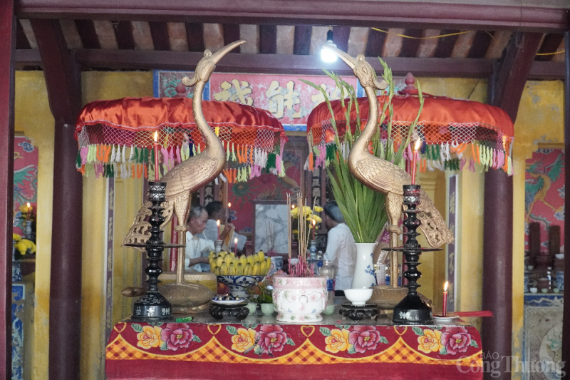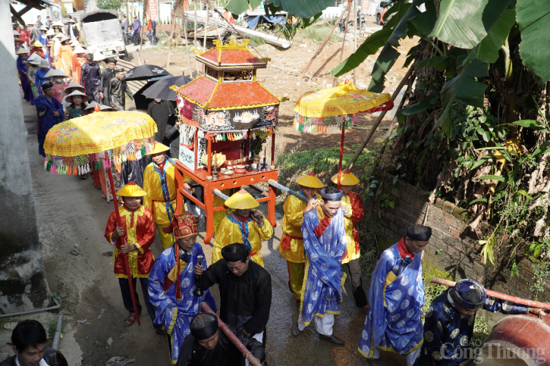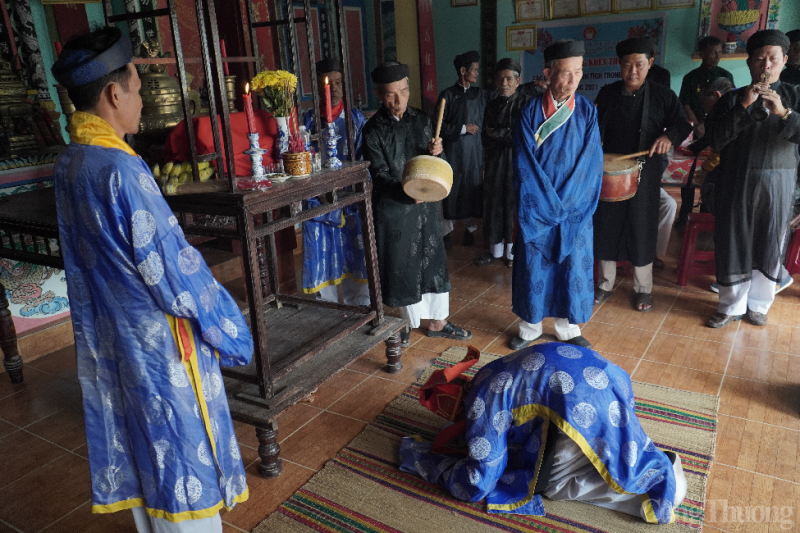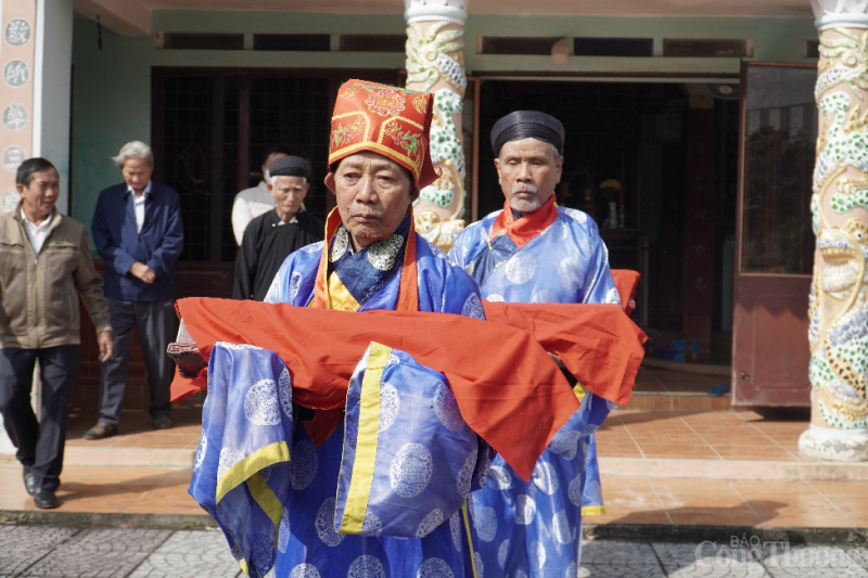 | Phần lễ diễn ra trong không khí trang nghiêm với nghi thức nghinh sắc phong các vị thần được thờ trong đình. |