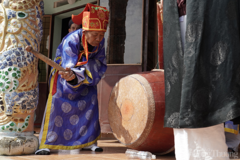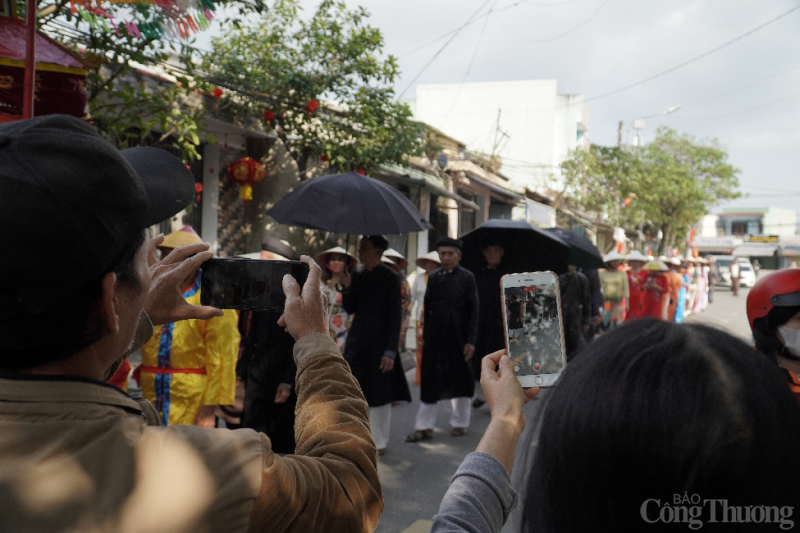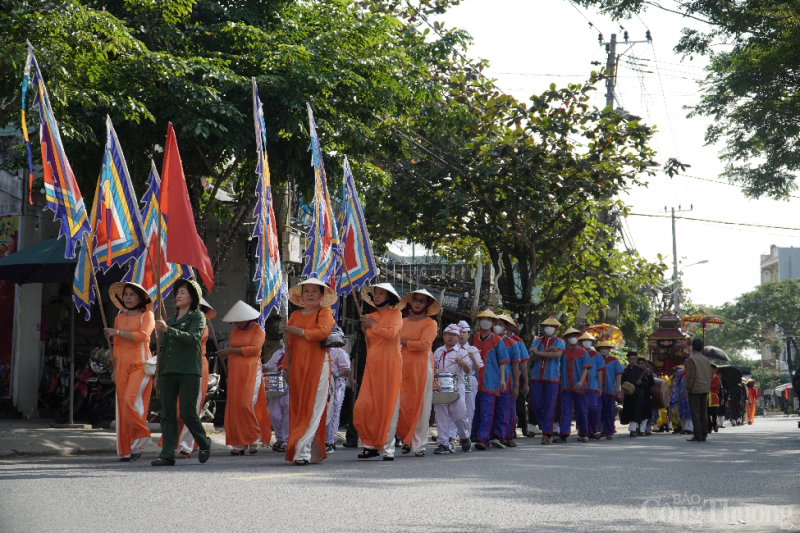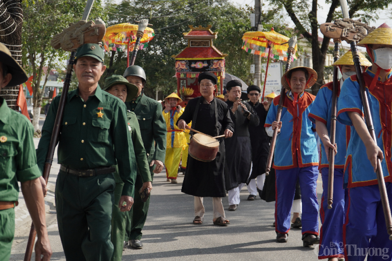 | Trong tiếng trống trận dồn dập và không khí tưng bừng của lễ hội đầu xuân, người dân làng cổ Túy Loan tổ chức lễ rước sắc Thần khai hội đình làng. |
