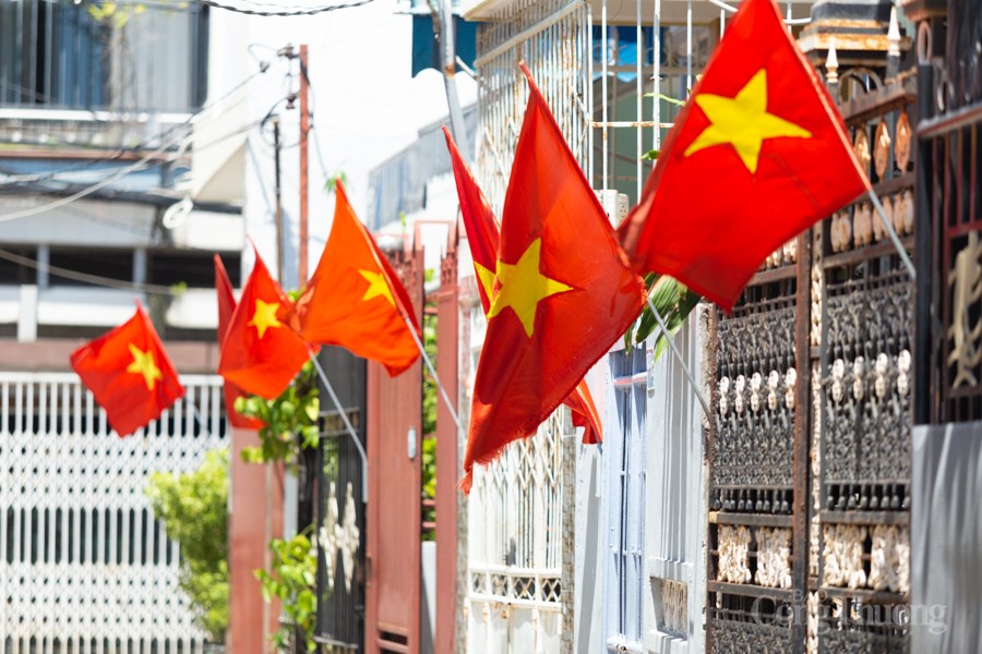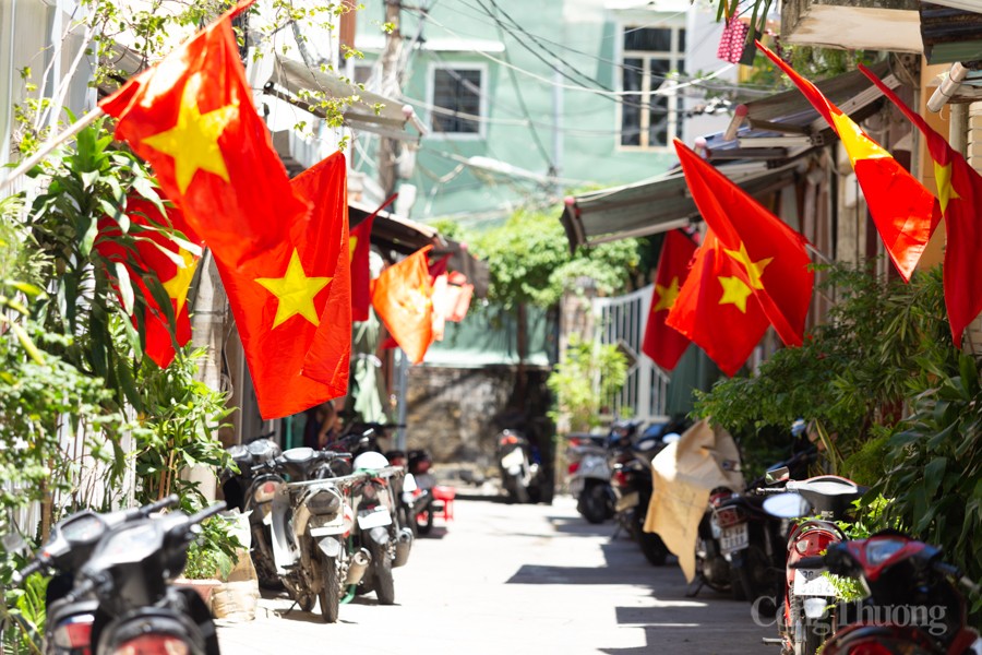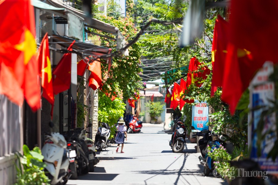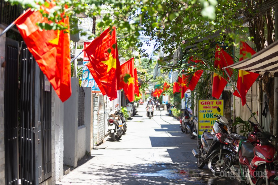| Cờ đỏ sao vàng tung bay phấp phới ở các tuyến đường, ngõ hẻm |