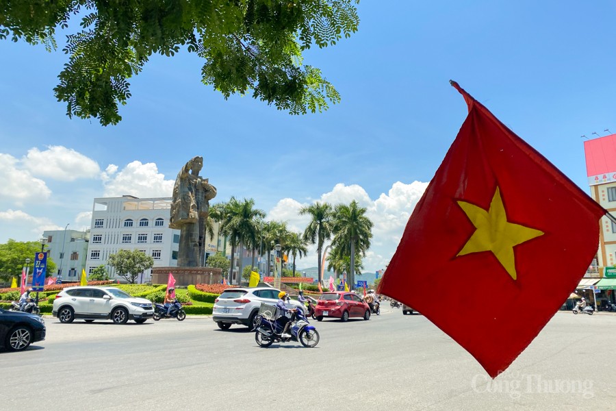 Những con đường rực màu cờ đỏ tung bay trong gió tạo những dấu ấn, hình ảnh đẹp và trang trọng tự hào. |