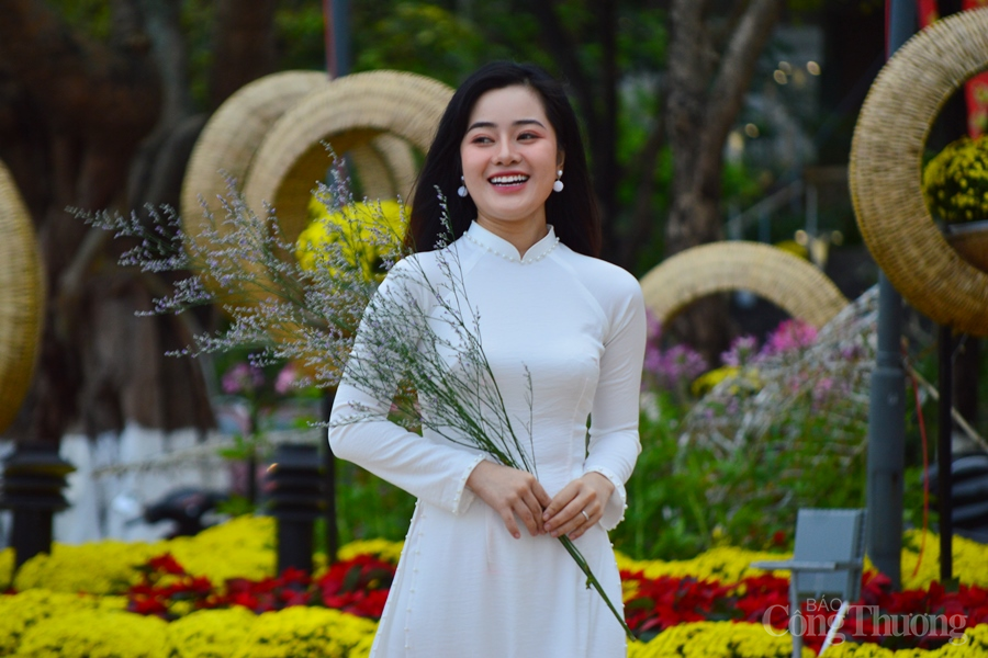 | Những thiếu nữ với bộ áo dài truyền thống nổi bật và thu hút mọi ánh nhìn trên đường hoa Xuân |