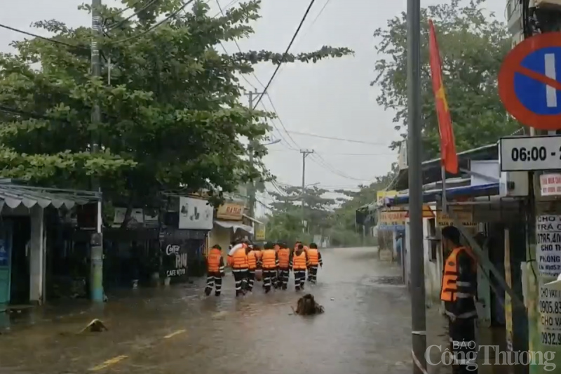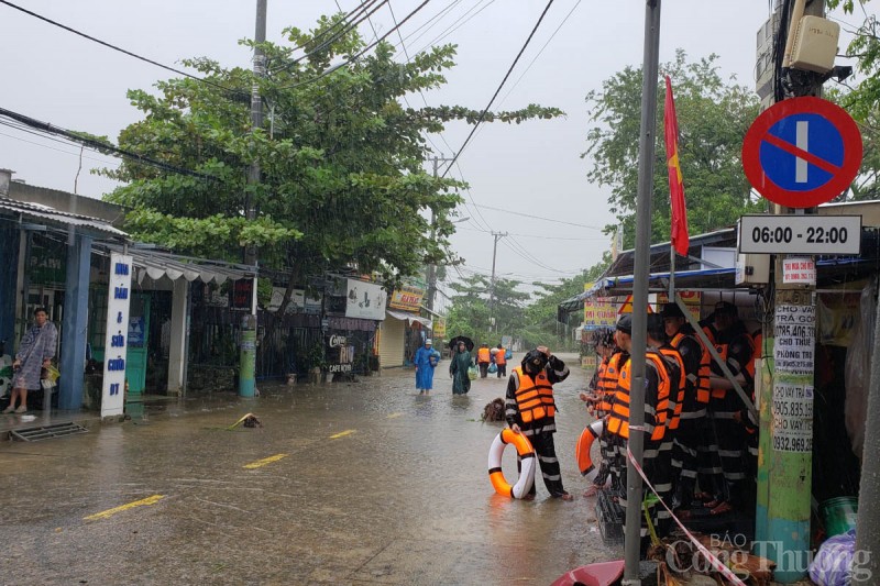 | Tại các điểm ngập lụt ngay từ chiều 13/10, các lực lượng đóng trên địa bàn phường trực 24/24 giờ để cảnh báo và sẵn sàng hỗ trợ người dân. Hiện lực lượng chức năng đang thực hiện phong tỏa, chốt chặn tại 2 điểm ngập sâu từ 1m – 2m trên đường Mẹ Suốt. |