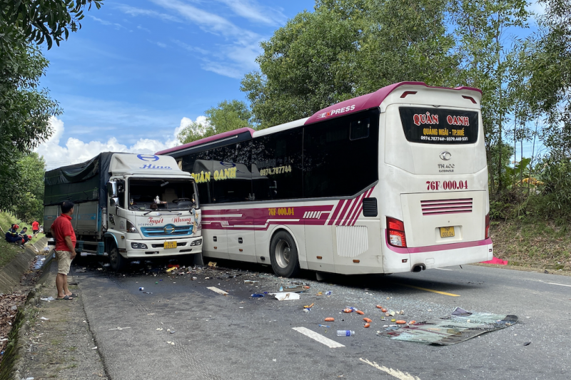 Thông tin ban đầu, khoảng 11h20 ngày 8/11, xe khách 45 chỗ BKS 76F - 000.04 đang lưu thông trên đường tránh hướng Nam - Bắc, đến Km24+150 (thuộc địa phận xã Hoà Sơn, huyện Hoà Vang, TP Đà Nẵng) thì xảy ra va chạm với xe máy BKS 53X9 – 8828. Sau đó, xe khách lại tục tiếp tục va chạm với xe tải BKS 93H - 021.57 lưu thông chiều ngược lại.
