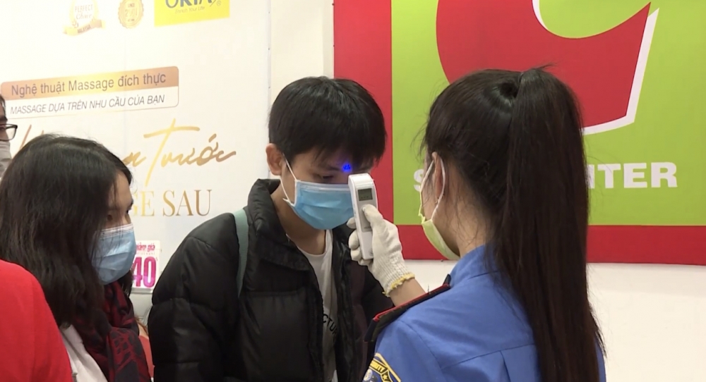 | Đo thân nhiệt trước khi vào mua hàng tại một siêu thị ở Đà Nẵng |