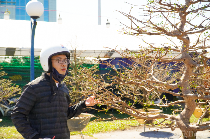 | Là người sành chơi hoa mai, anh Trần Thanh Toàn (người dân thành phố Đà Nẵng) nhận xét, hoa mai năm nay ít hoa hơn, không được đẹp như năm ngoái. Dù đã lựa tại nhiều nhà vườn nhưng anh vẫn chưa chọn được chậu hoa mai ưng ý. “Năm nay mình sẽ chuyển sang mua các loại hoa khác như cúc pha lê, cúc vạn thọ… nhằm thay đổi không khí, cũng bởi chúng đẹp hơn”, anh Toàn cho hay. |