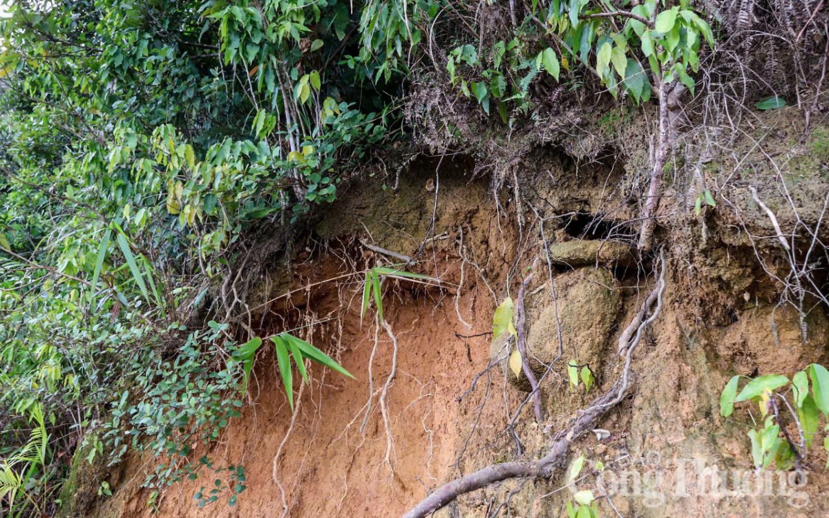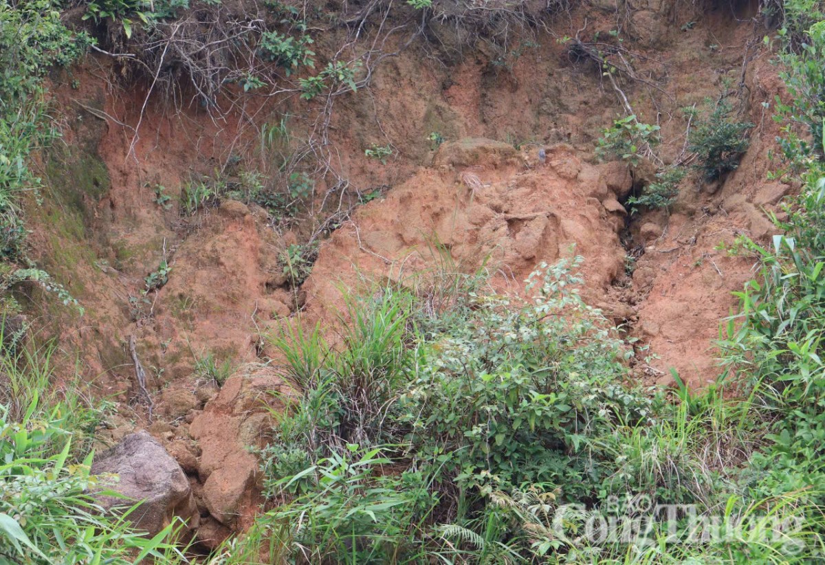 | Nhiều vết nứt có nguy cơ sạt lở cao |