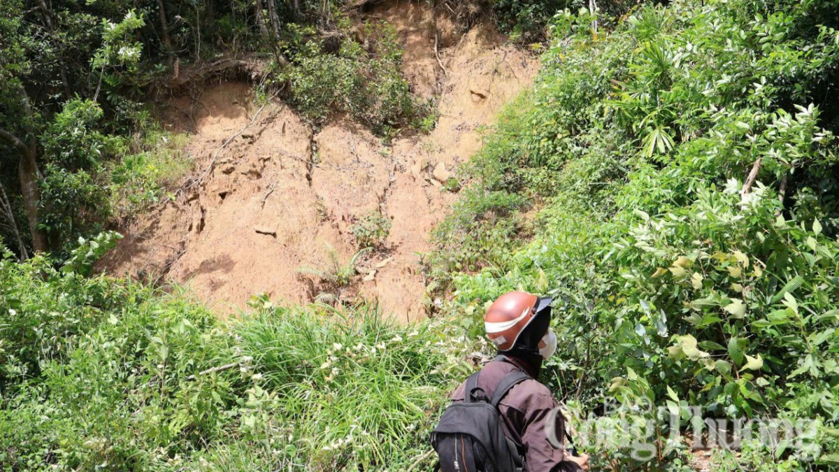 | Do ảnh hưởng của mưa bão trong thời gian qua, nhiều khu vực núi Sơn Trà (TP. Đà Nẵng) hiện đã xuất hiện các điểm có nguy cơ sạt lở cao |