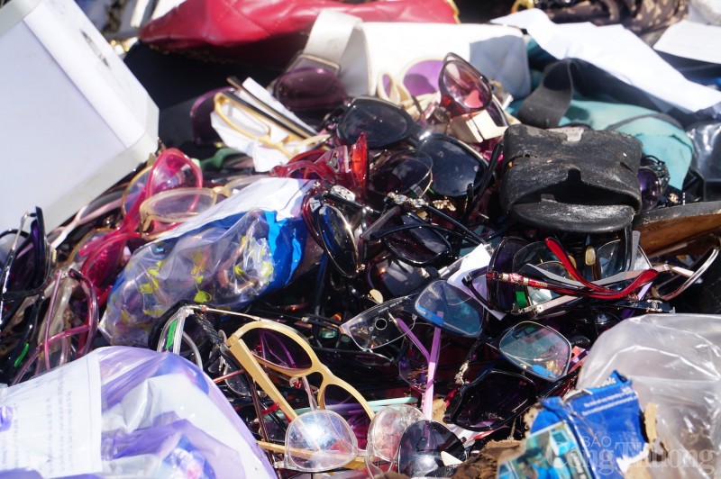 Trong đó, chủ yếu là hàng giả, thuộc các ngành hàng như quần áo, giày dép, túi, mắt kính, phụ kiện điện thoại, đồng hồ, hàng gia dụng như nồi, khay cơm… tổng số lượng hàng hóa tiêu hủy là 25.572 sản phẩm, tổng trị giá ước hơn 1,11 tỷ đồng.