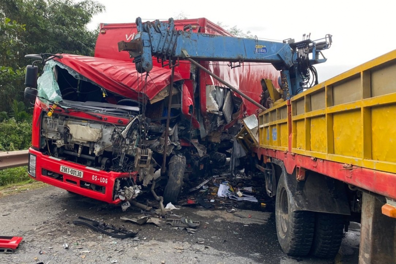 Theo đó, khi xe tải chở hàng BKS 29KT-001.30 do tài xế Trần Văn Long (SN 1993, trú Nga Sơn, tỉnh Thanh Hóa) chở thêm 1 phụ lái đang lưu thông thì va chạm với xe cẩu KBS 36H-06569 do tài xế Bùi Công Nhứt (SN 1995, trú thị xã An Nhơn, tỉnh Bình Định) chở theo 1 phụ lái đang đi ngược chiều.