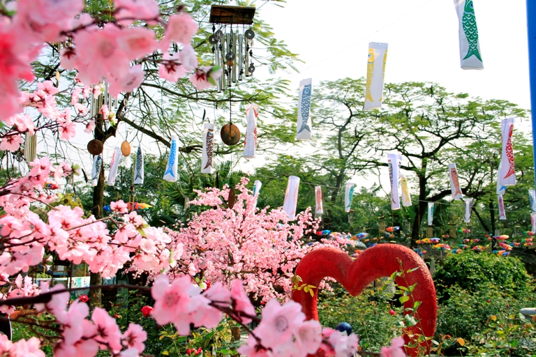 Trong không khí tưng bừng của năm mới, du khách sẽ được trải nghiệm những nét văn hóa nổi bật của đất nước Nhật Bản như vườn hoa anh đào với tiếng leng keng của chuông gió, hay màu sắc sặc sỡ của những chiếc đèn lồng cá Koi và những chú mèo thần tài ngộ nghĩnh.