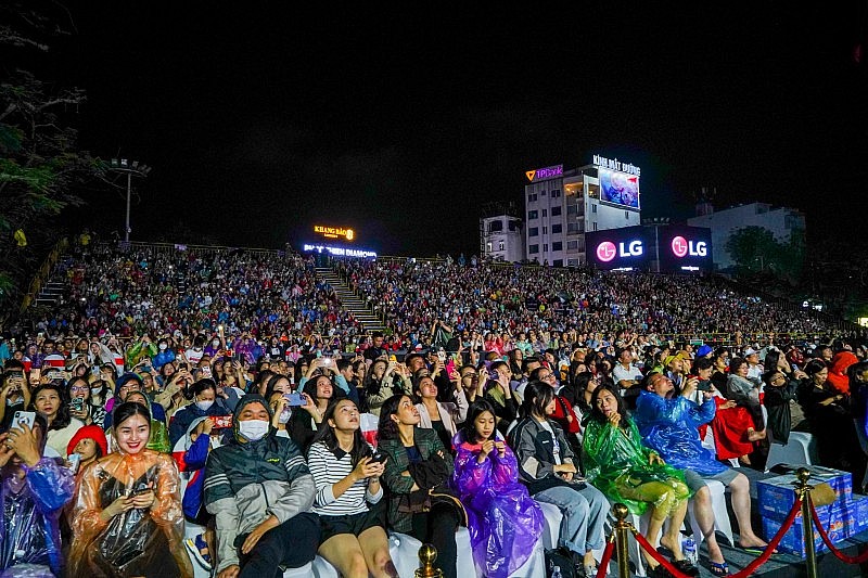 Mặc dù tối nay Hải Phòng có mưa nhưng lễ khai mạc vẫn thu hút đông đảo người dân tới theo dõi chương trình.