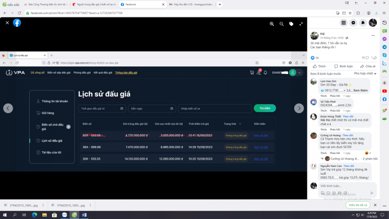 Trong một bài đăng trước đó, vị "đại gia" này còn thông tin về việc tham gia đấu giá 3 biển số siêu đẹp khác nhưng không trúng. Cụ thể, ông H.X.H tham gia đấu giá biển số 99A-666.66, 36A-999.999 và 30K-555.55.