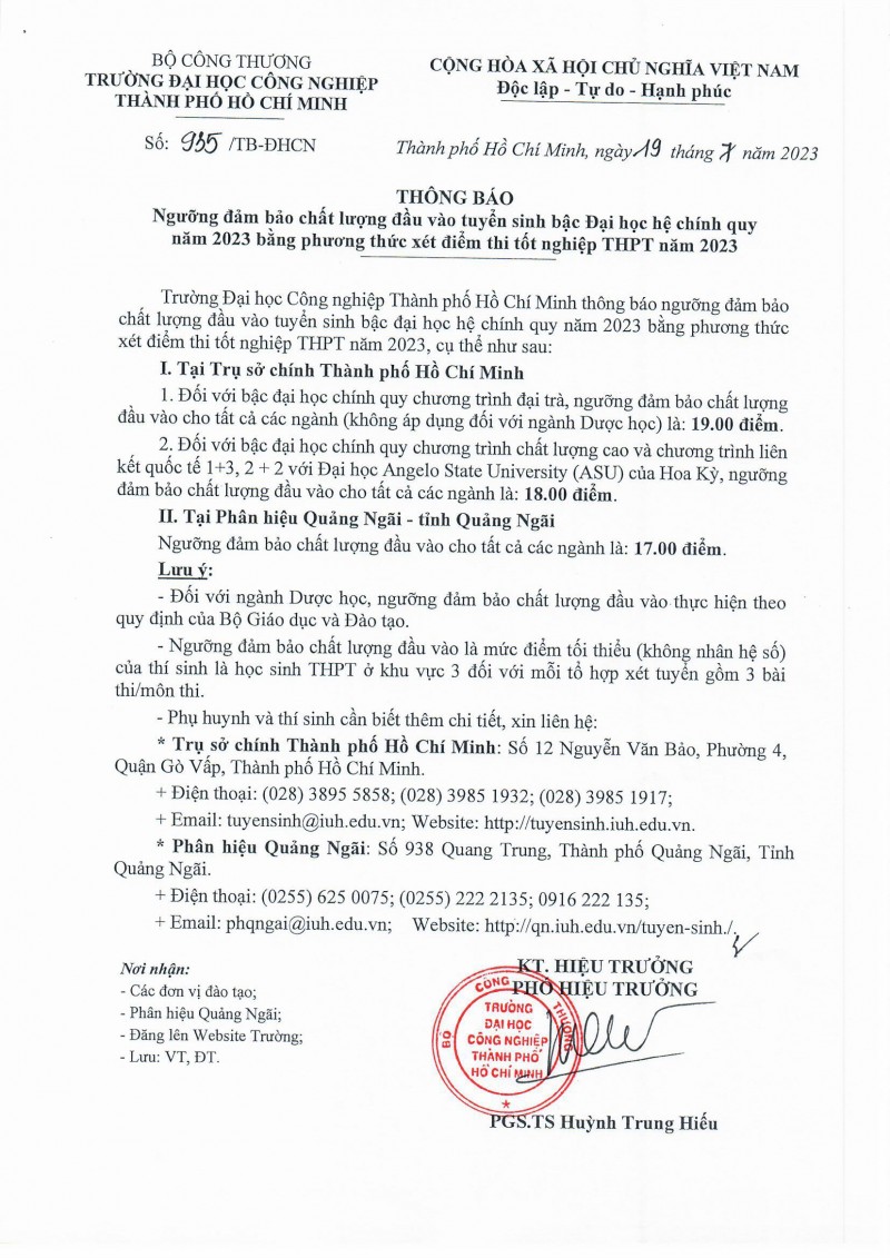 | Công bố Quyết định công nhận Hội đồng trường Trường Đại học Công nghiệp TP. Hồ Chí MinhĐiểm chuẩn Trường Đại học Công nghiệp TP. Hồ Chí Minh thấp nhất 21 điểm - cao nhất 29 điểm |