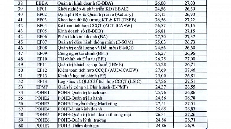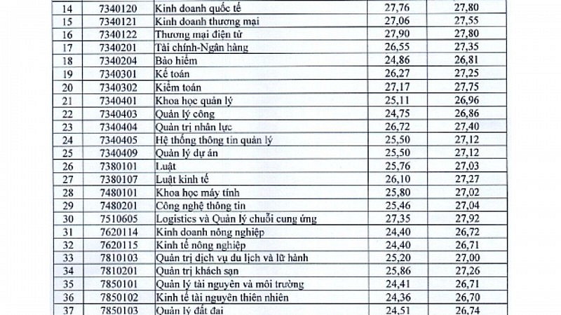Theo thông báo của Hội đồng tuyển sinh Đại học Kinh tế Quốc dân, mức điểm chuẩn dao động từ 24.36 điểm – 27.92 điểm.