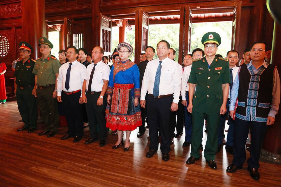 Tiếp đó, đoàn đã dâng hương, hoa tại Đài tưởng niệm các Anh hùng liệt sĩ, thành kính tưởng nhớ các anh hùng liệt sỹ đã anh dũng hy sinh trong sự nghiệp đấu tranh, giành độc lập tự do cho Tổ quốc. Đồng bào các dân tộc thiểu số tỉnh Lào Cai nguyện tiếp tục chung sức chung lòng góp phần bảo vệ vững chắc Tổ quốc Việt Nam XHCN, xây dựng tỉnh Lào Cai ngày càng phát triển, phồn vinh.