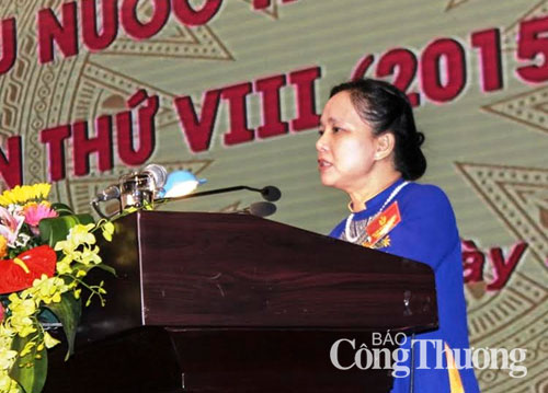Bà Trần Thị Hà - Phó Chủ tịch thường trực Hội đồng thi đua khen thưởng Trung ương phát biểu tại đại hội