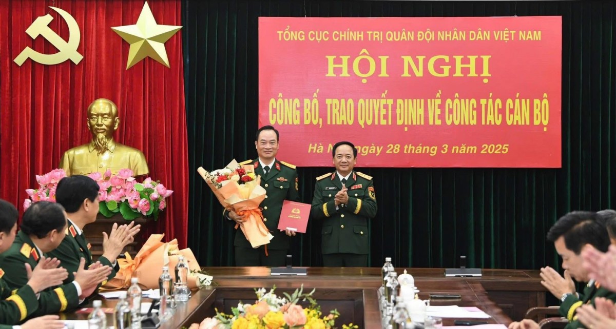| Thượng tướng Trịnh Văn Quyết - Chủ nhiệm Tổng cục Chính trị Quân đội Nhân dân Việt Nam - trao quuyết định bổ nhiệm cho Đại tá Phạm Văn Tú - Ảnh: QĐND |