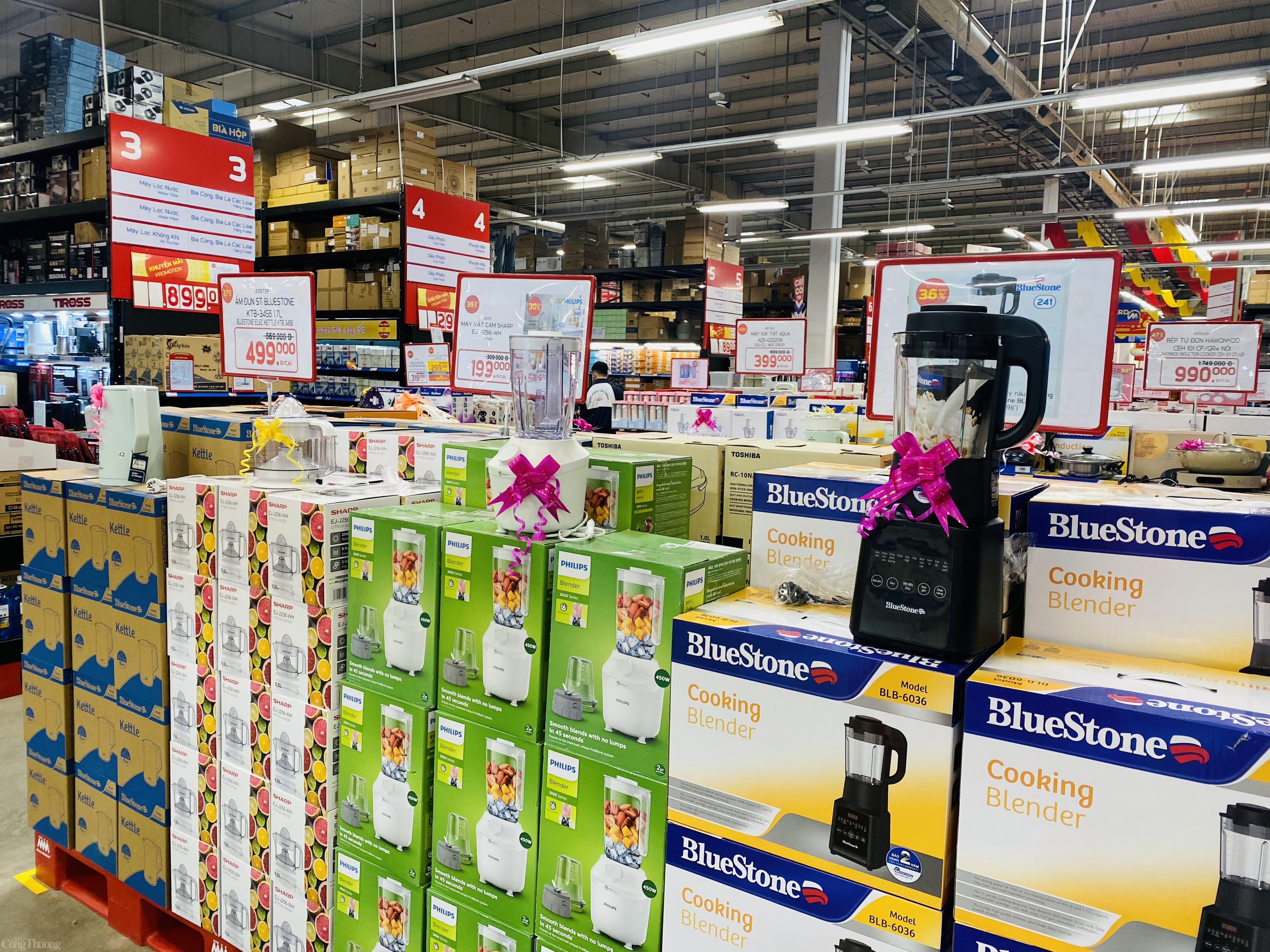 | Nhiều sản phẩm đồ gia dụng giảm giá sâu, cùng với đó là những phần quà tặng hấp dẫn dành cho khách hàng mua sắm dịp 8/3. Ảnh: Thanh Tuấn |