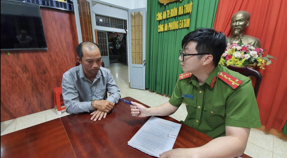 | Cơ quan Công an làm việc với đối tượng Ngô Văn Quyết. (Ảnh: Công an Đắk Lắk cung cấp) |