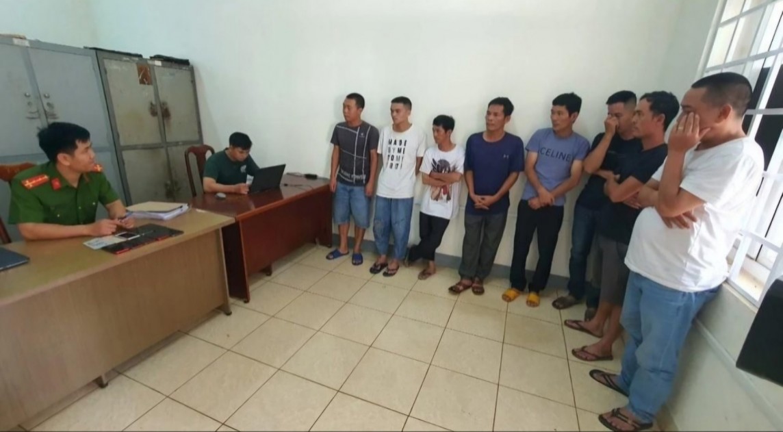 | Các đối tượng trong đường dây cá độ bóng đá bị Công an TP. Buôn Ma Thuột, tỉnh Đắk Lắk mời làm việc. (Ảnh: Công an cung cấp) |