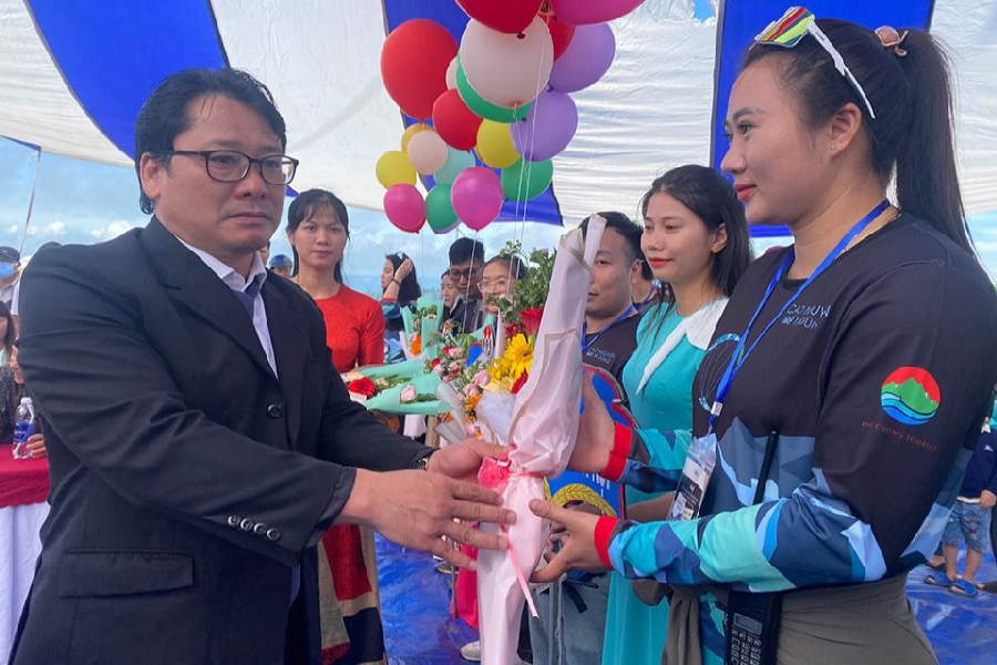| Lãnh đạo Sở Văn hóa, Thể thao và Du lịch tỉnh Đắk Nông trao hoa lưu niệm cho các vận động viên tham gia tranh tài. |