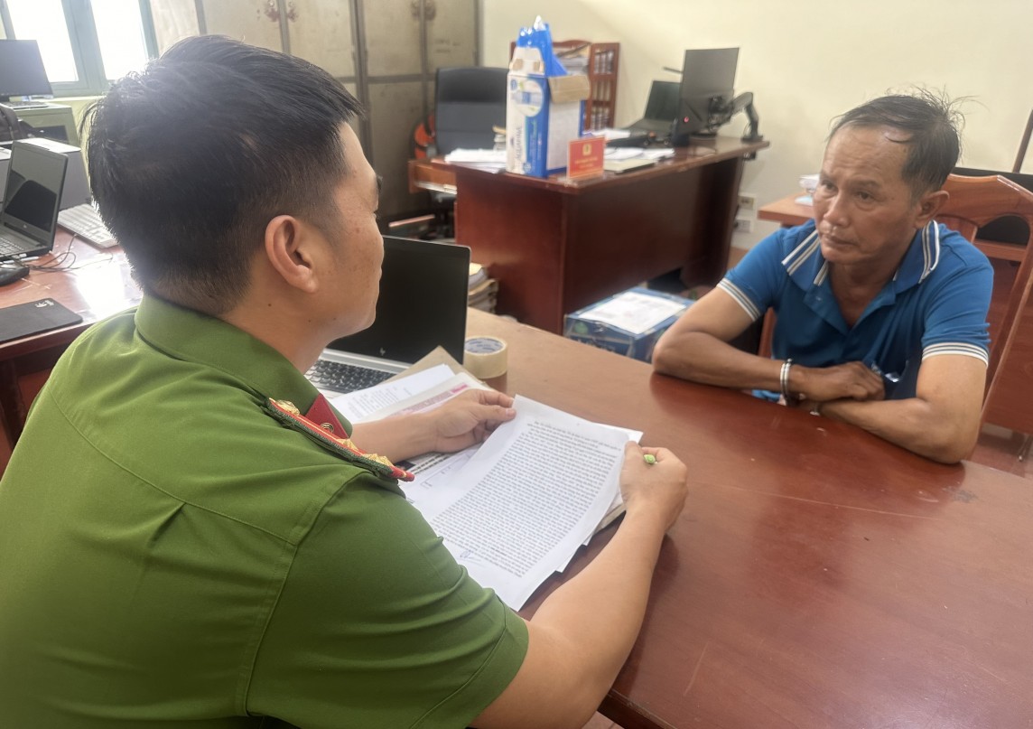 | Lực lượng công an tiến hành lấy lời khai đối tượng Nguyễn Văn Thình (Ảnh: Công an cung cấp) |
