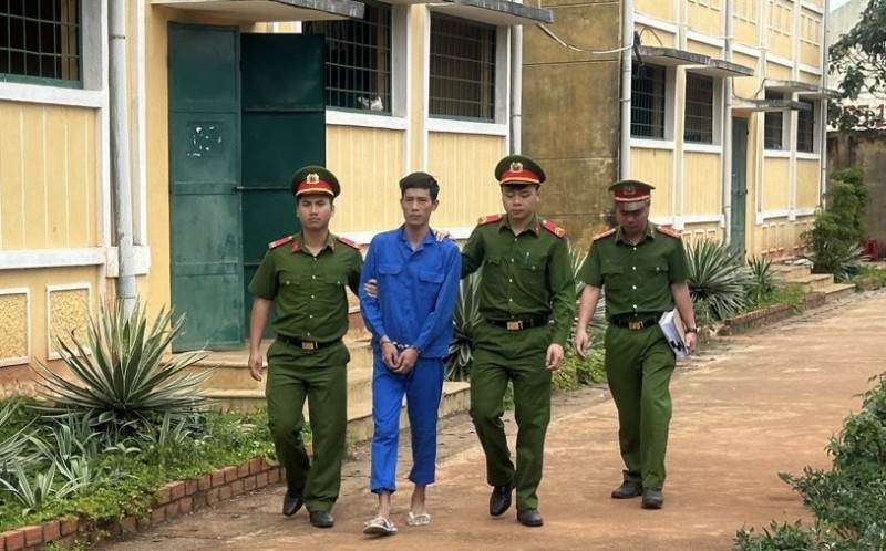 | Lực lượng Công an TP. Gia Nghĩa dẫn giải đối tượng Đàm Văn Tuyên vào nhà tạm giữ |
