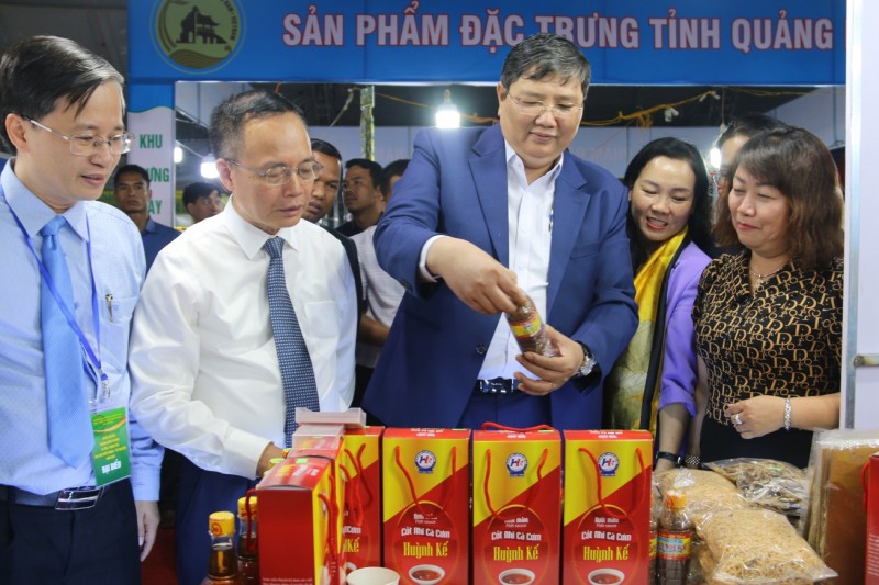 | Ông Ngô Quang Trung, Cục trưởng Cục Công Thương địa phương (thứ hai từ trái sang) và ông Lê Văn Chiến – Phó Chủ tịch Thường trực UBND tỉnh Đắk Nông (thứ ba từ trái sang) tham quan gian hàng tại hội chợ |