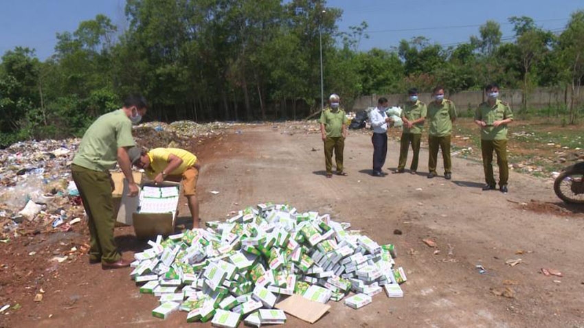 Theo đó, ngày 07/4/2021 tại Trạm xử lý rác thành phố Gia Nghĩa, địa chỉ thôn Cây Xoài, xã Đắk Nia, TP Gia Nghĩa, tỉnh Đắk Nông, Hội đồng tiêu hủy hàng hóa tịch thu đã tiến hành tiêu hủy 5.316 hộp sản phẩm dinh dưỡng sữa bột Omega 369 Q10 Alaska giả không có giá trị sử dụng, có tổng giá trị 1.121.940.000 đồng. Hội đồng tiêu hủy đã lựa chọn hình thức tiêu hủy không gây ảnh hưởng đến môi trường, sử dụng biện pháp cơ học, bằng hình thức cho xe cán dập và chôn lấp.