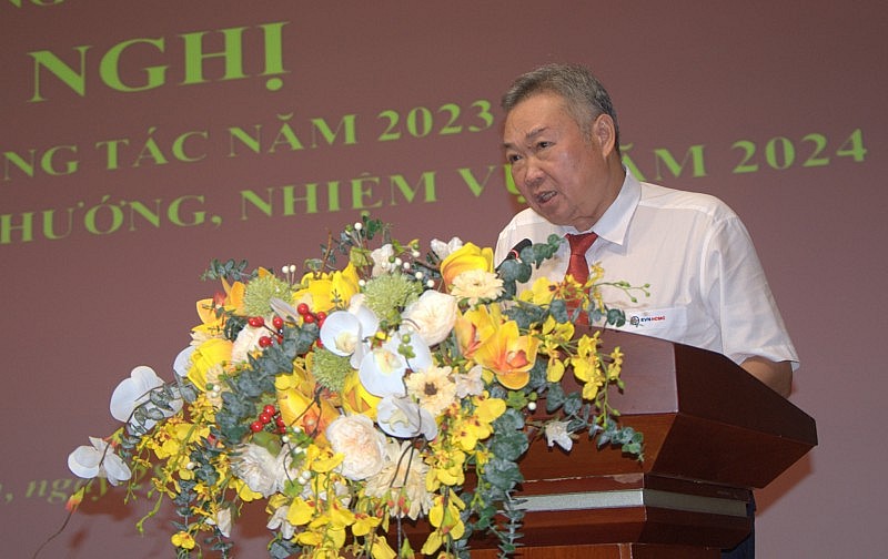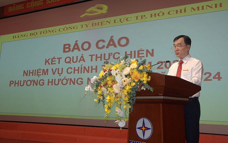 | Ông Trần Vũ Quang - Phó Bí thư thường trực Đảng ủy Tổng công ty Điện lực TP. Hồ Chí Minh, báo cáo tổng kết công tác năm 2023, phương hướng nhiệm vụ năm 2024 của Đảng bộ Tổng công ty |