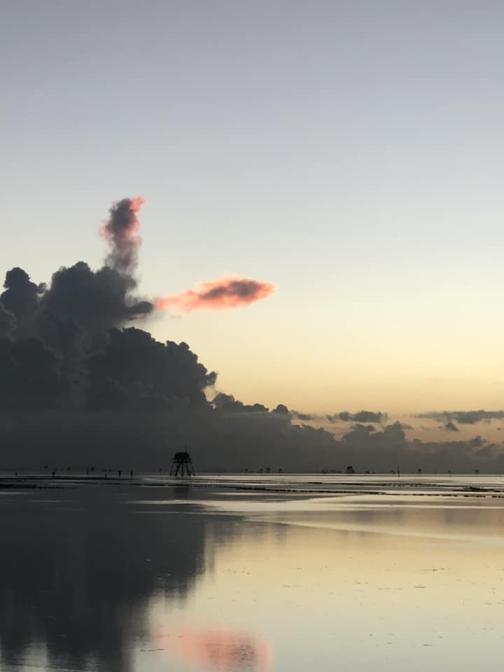 Đám mây màu đỏ hình cá chép xuất hiện trên bầu trời Thái Bình. Ảnh MXH