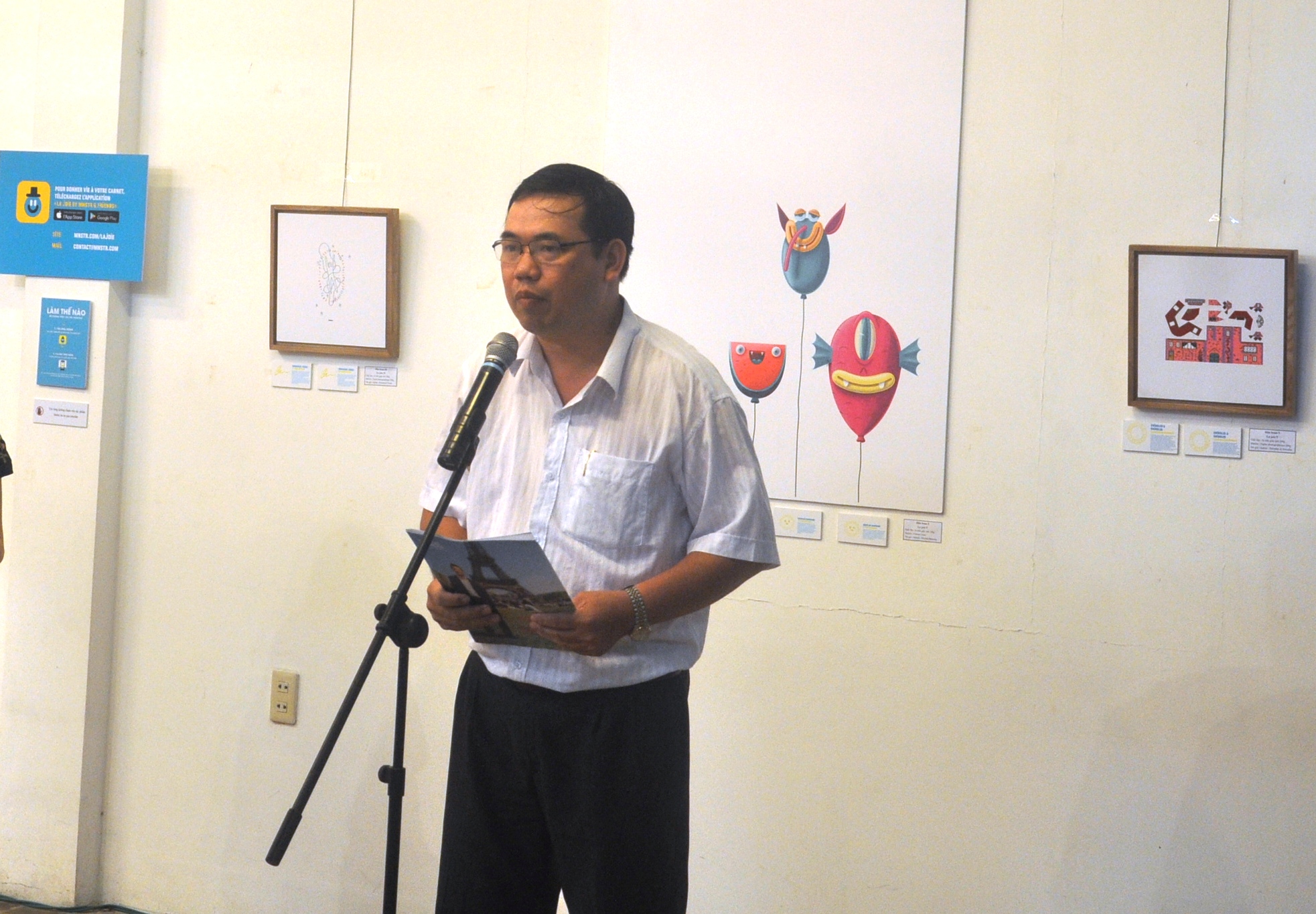 | Tiến sĩ Nguyễn Bảo Quốc – Giám đốc Viện Pháp tại Huế phát biểu khai mạc triển lãm |
