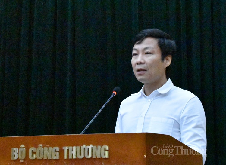 | Ông Nguyễn Thiện Nam, Bí thư Đảng uỷ, Hiệu trưởng Trường Đào tạo, bồi dưỡng cán bộ Công Thương tham luận tại hội nghị |