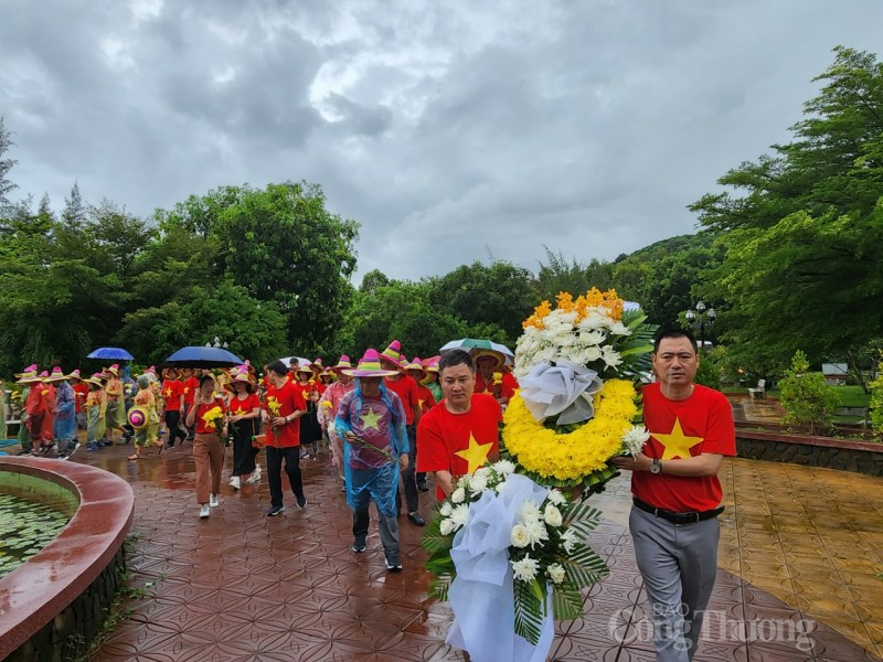 | Đoàn làm lễ dâng hương, hoa tại Di tích lịch sử cấp quốc gia Bến tàu Không số Vũng Rô |