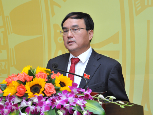 | Tổng giám đốc EVN Đặng Hoàng An báo cáo trước Đại hội |